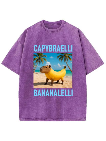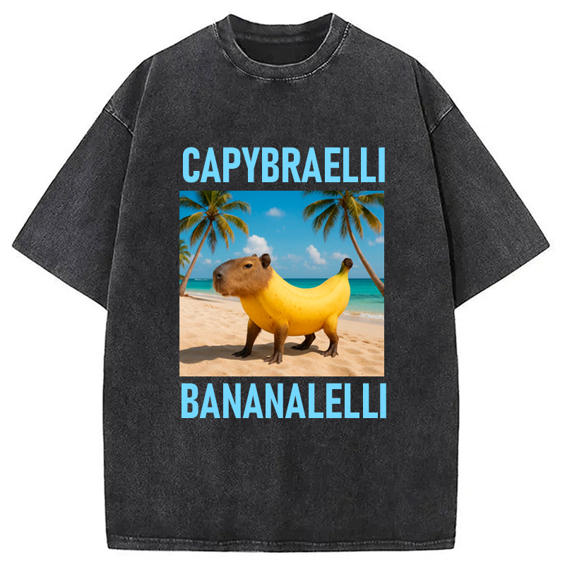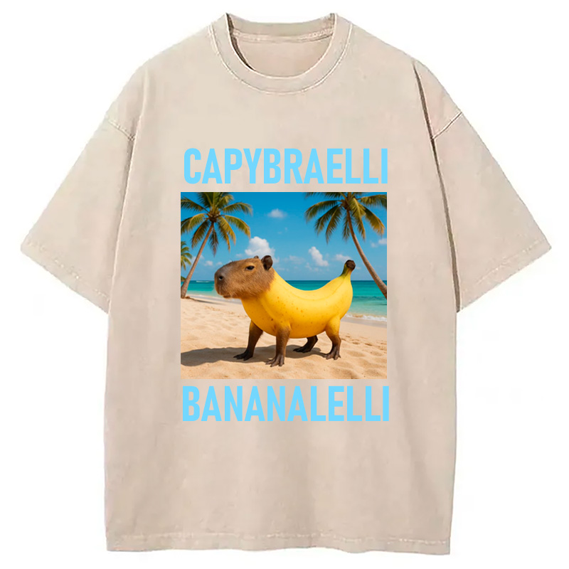 Capybara Banana Brainrot Washed T-shirt