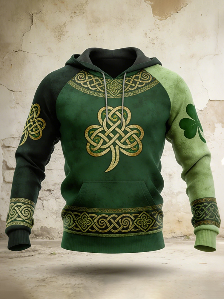 Men's Casual St. Patrick's Day Shamrock Patchwork Print Hoodie