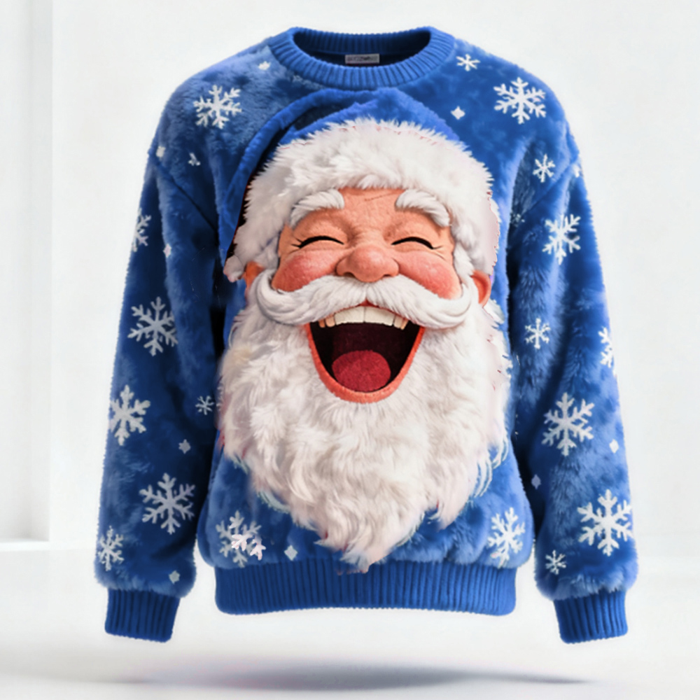 Big Laughing Santa Claus Red Flannel Crew Neck Sweatshirt