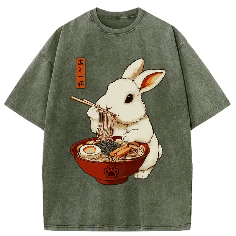 Bunny:one More Bowl, Please! Washed T-shirt
