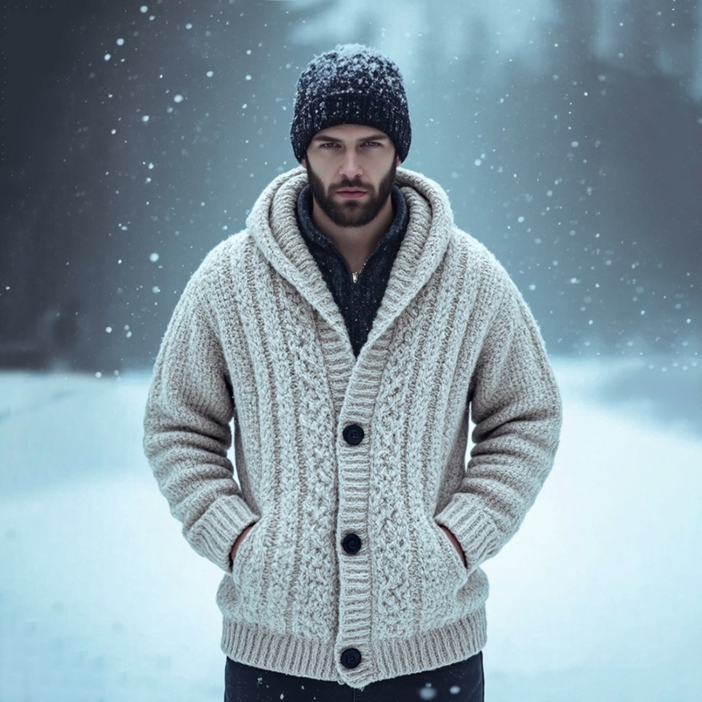 Men's Chunky Cable Knit Hooded Wool Sweater Cardigan