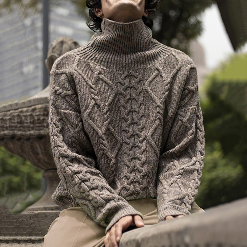 Men's Vintage Aran Jacquard Turtleneck Sweater