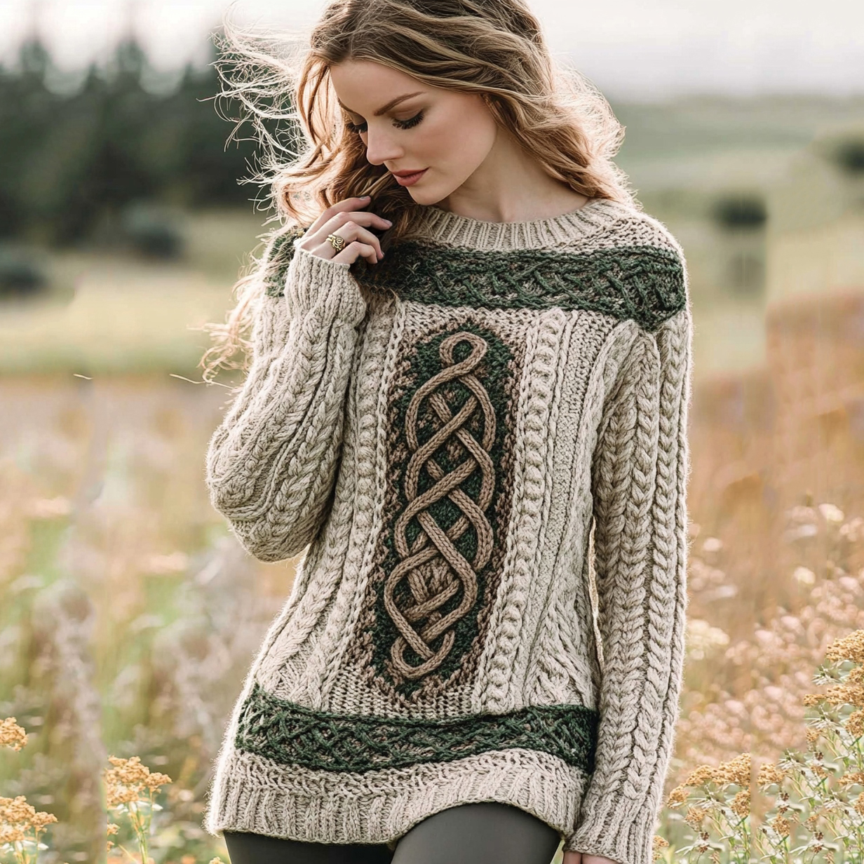 Women's Irish Celtic Knot Jacquard Contrast Sweater