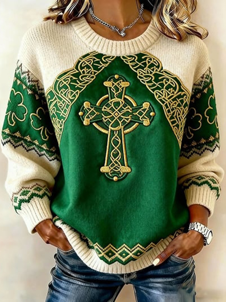 Women's St. Patrick's Day Shamrock Check Print Sweatshirt