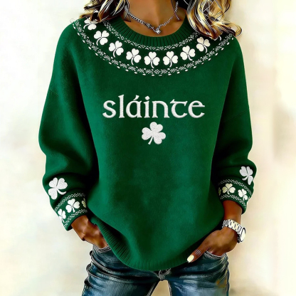 Women's St. Patrick's Day Shamrock Print Crew Neck Sweatshirt