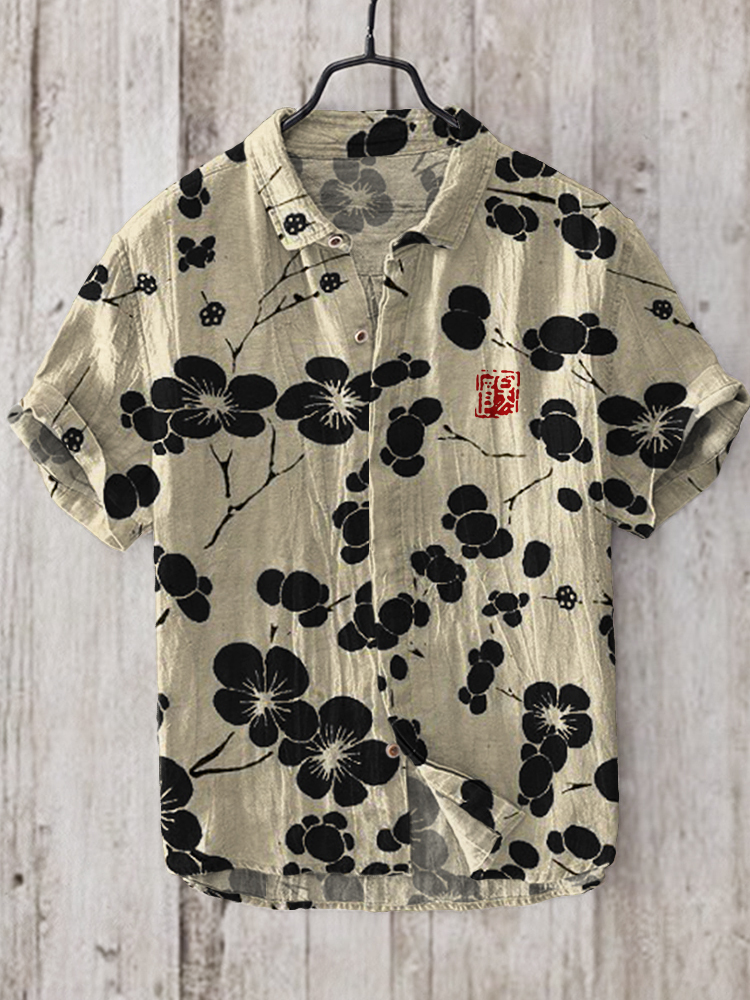 Cherry Blossom Japanese Lino Art Linen Blend Shirt
