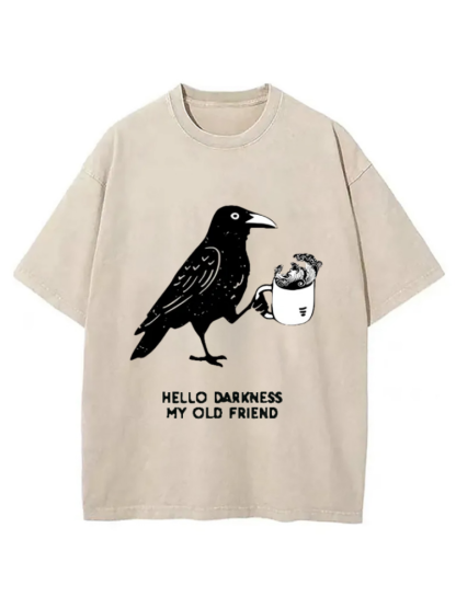 Crow Drinking Black Coffee Funny Washed T-shirt