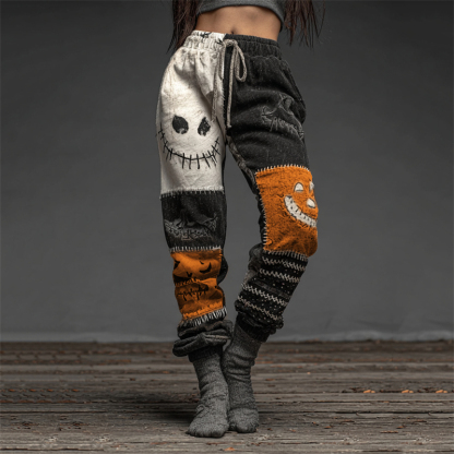 Halloween Spooky Faces Contrast Patchwork Washed Sweatpants