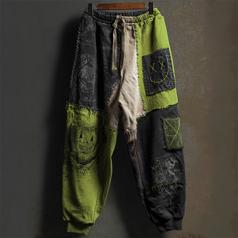 Halloween Stitched Faces Colorblock Patchwork Sweatpants