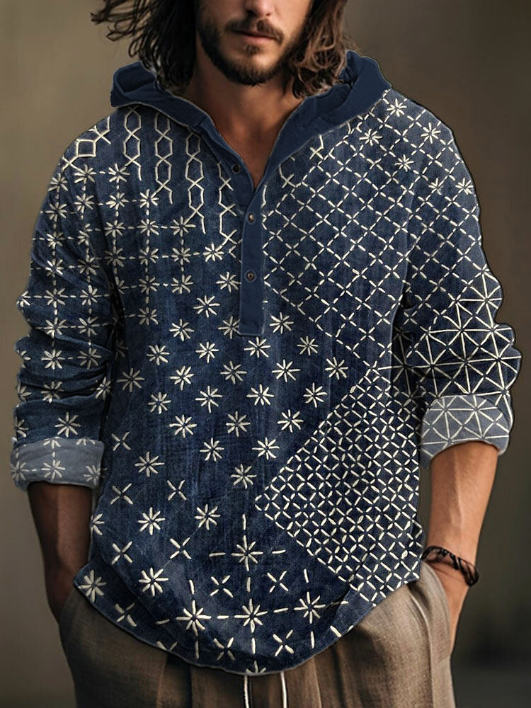 Japanese Art Embroidery Pattern Linen Blend Hoodie