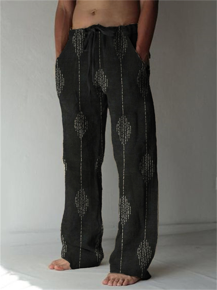 Japanese Sashiko Striped Linen Blend Casual Pants