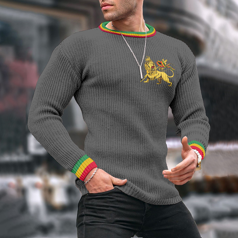 Juneteenth Lion Reggae Jacquard Iceland Crew Neck Sweater