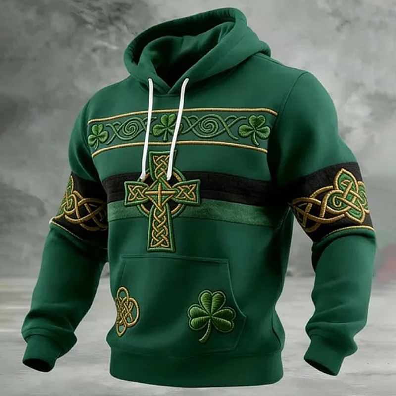 Men's Casual St. Patrick's Day Shamrock Print Hoodie