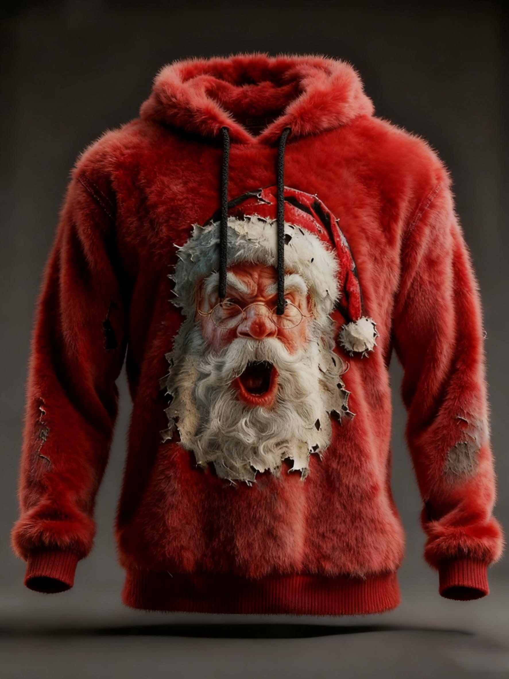 Men's Funny Vintage Christmas Santa Claus Art Flannel Hoodie