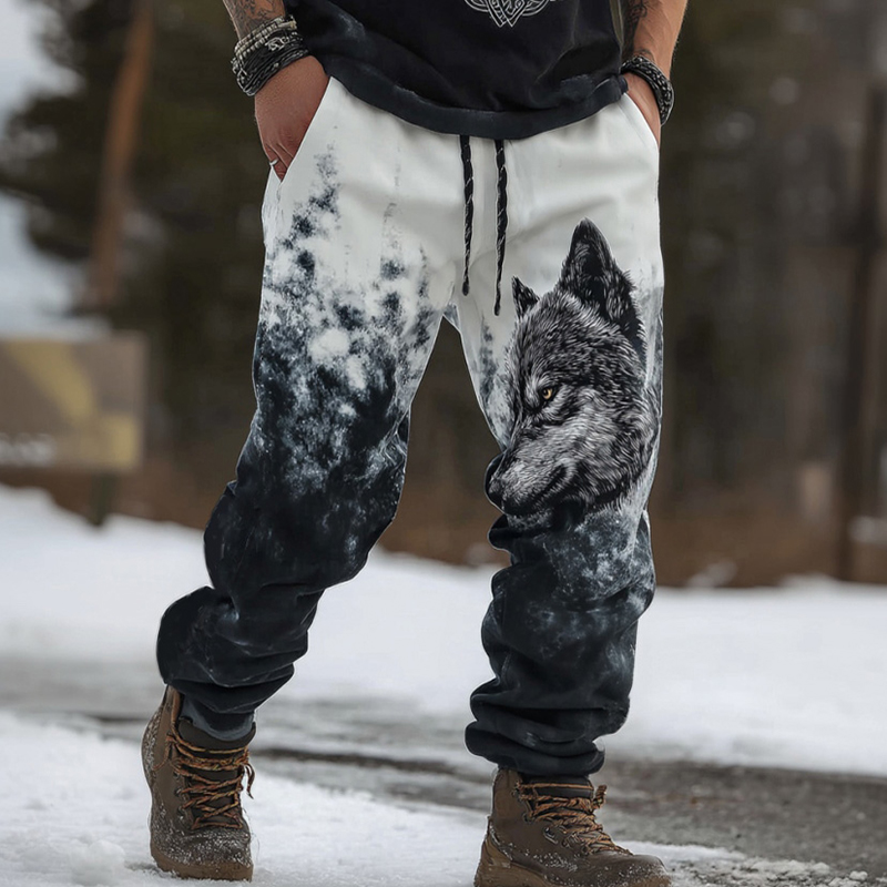 Men's Retro Celtic Style Wolf Color Block Casual Pants