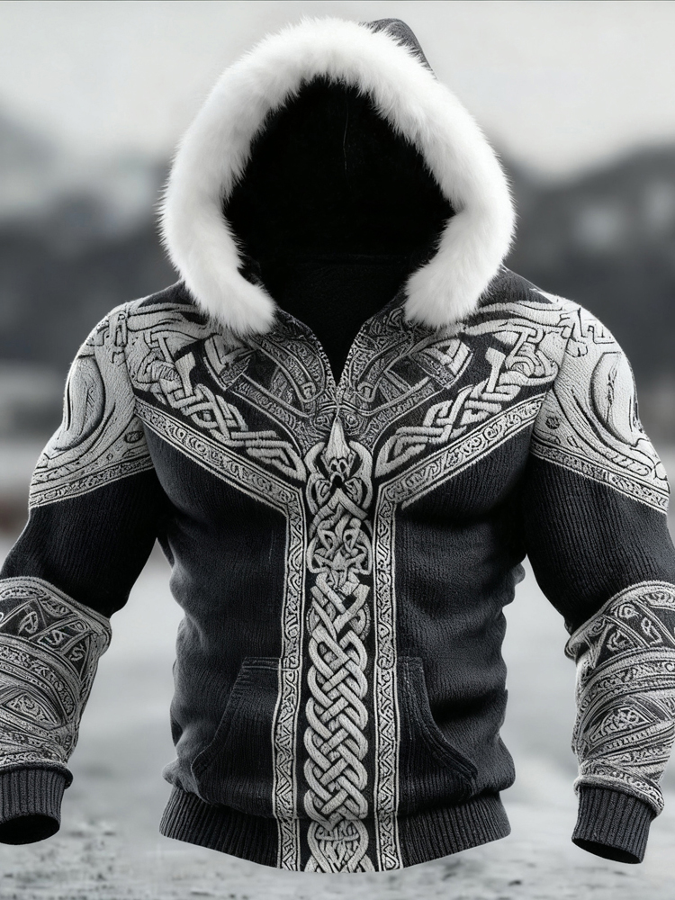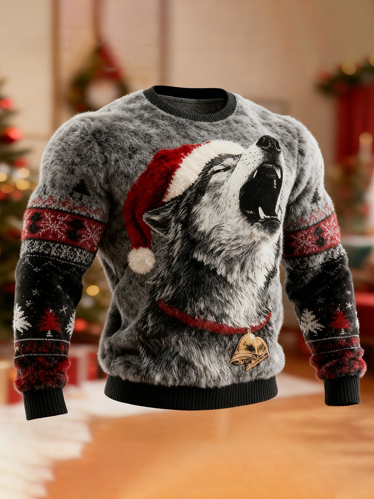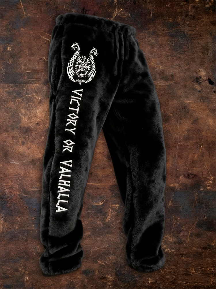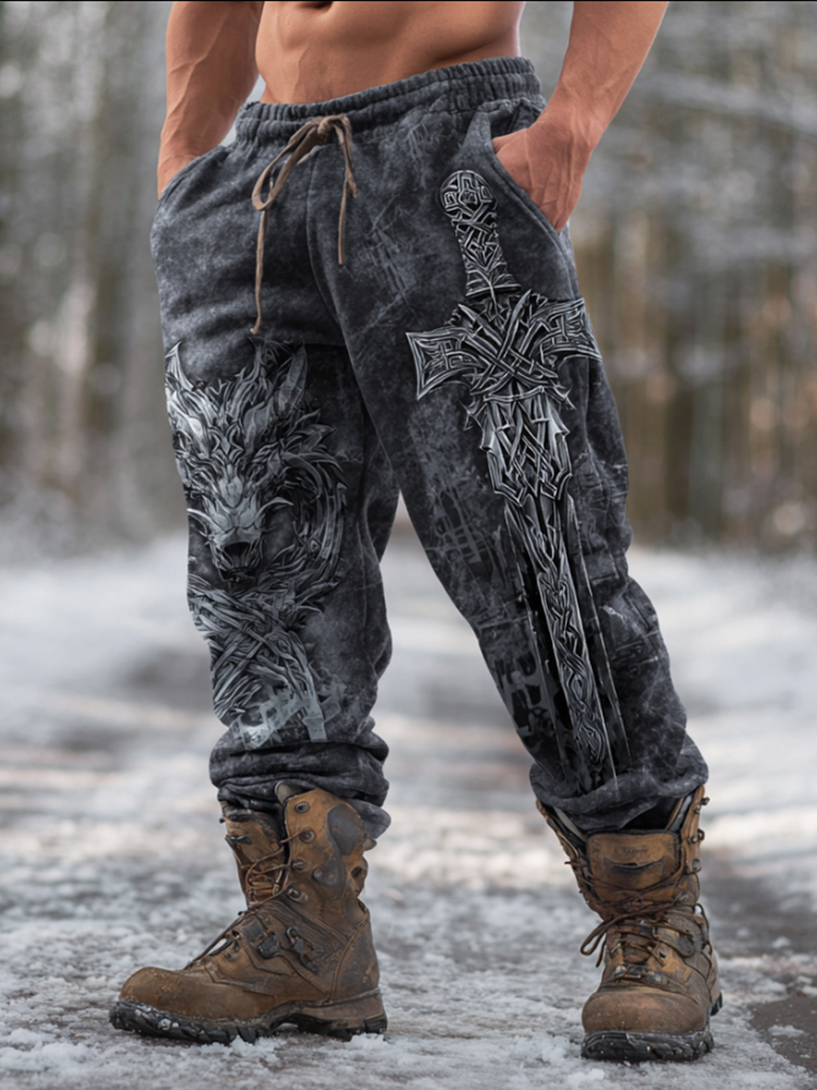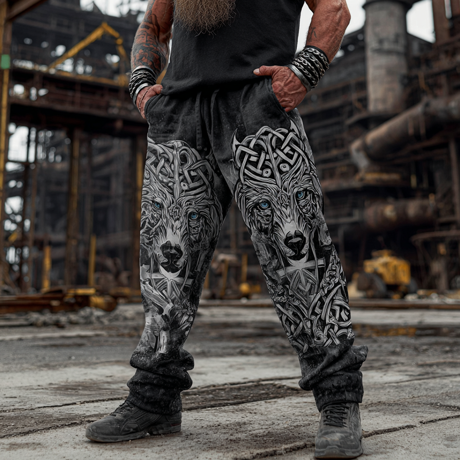 Men's Retro Viking Wolf Head Pattern Printed Casual Sweatpants