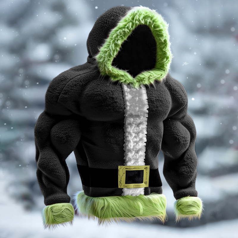 Men's Santa Claus Color Block Cosplay Plush Hoodie