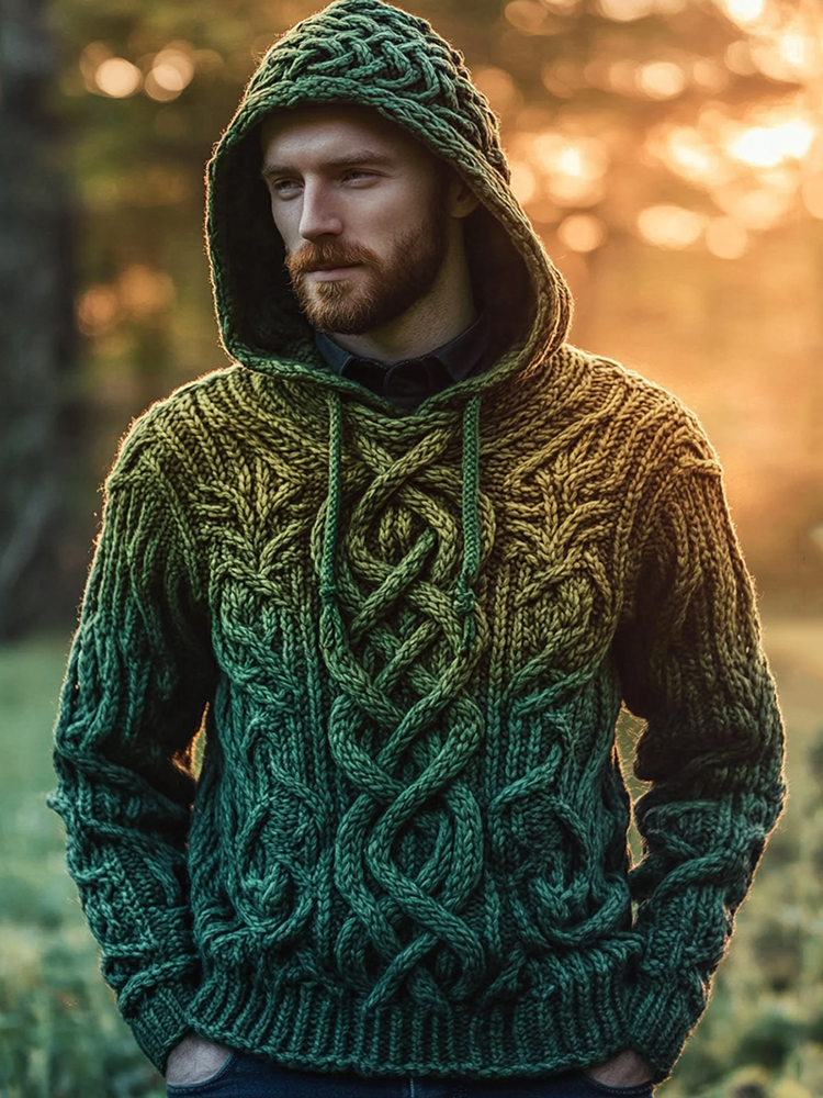 Men's Vintage Irish Celtic Knot Jacquard Mottled Hooded Sweater