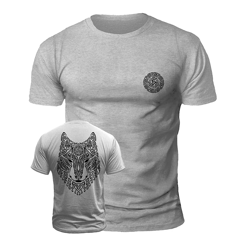 Men's Vintage Viking Wolf Print Casual Short Sleeve T-shirt