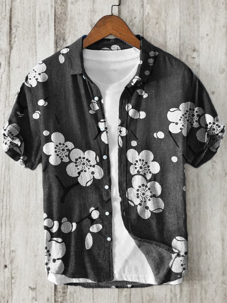 Plum Blossom Japanese Lino Art Linen Blend Shirt