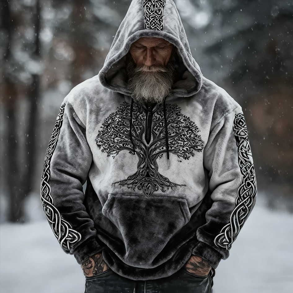 Retro Celtic Knot Design Pattern Winter Warm Men's Hooded Flannel Sweatshirt