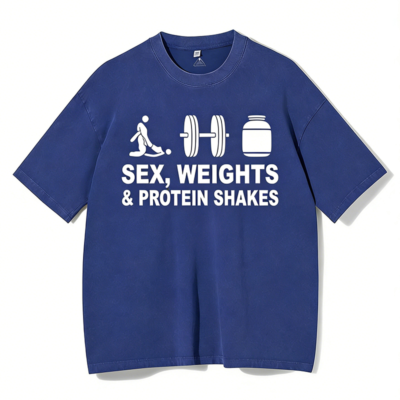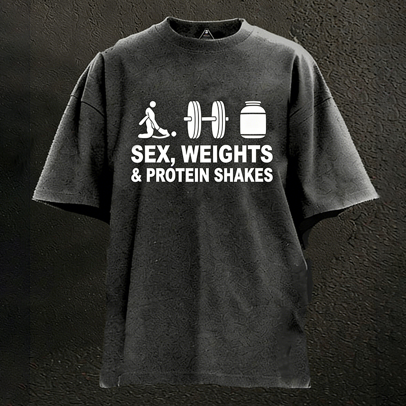 Sex Weights & Protein Shakes Washed Gym Shirt