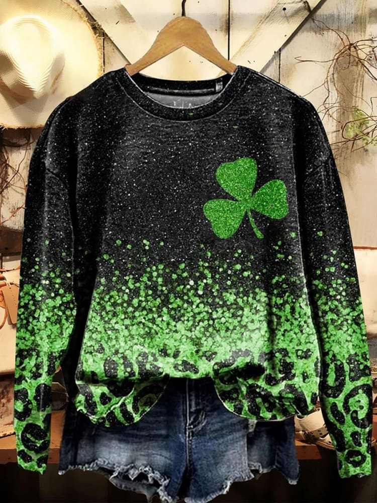 St. Patrick's Day Retro Lucky Clover Print Casual Sweatshirt