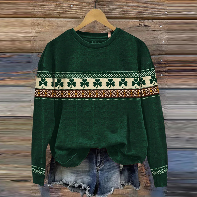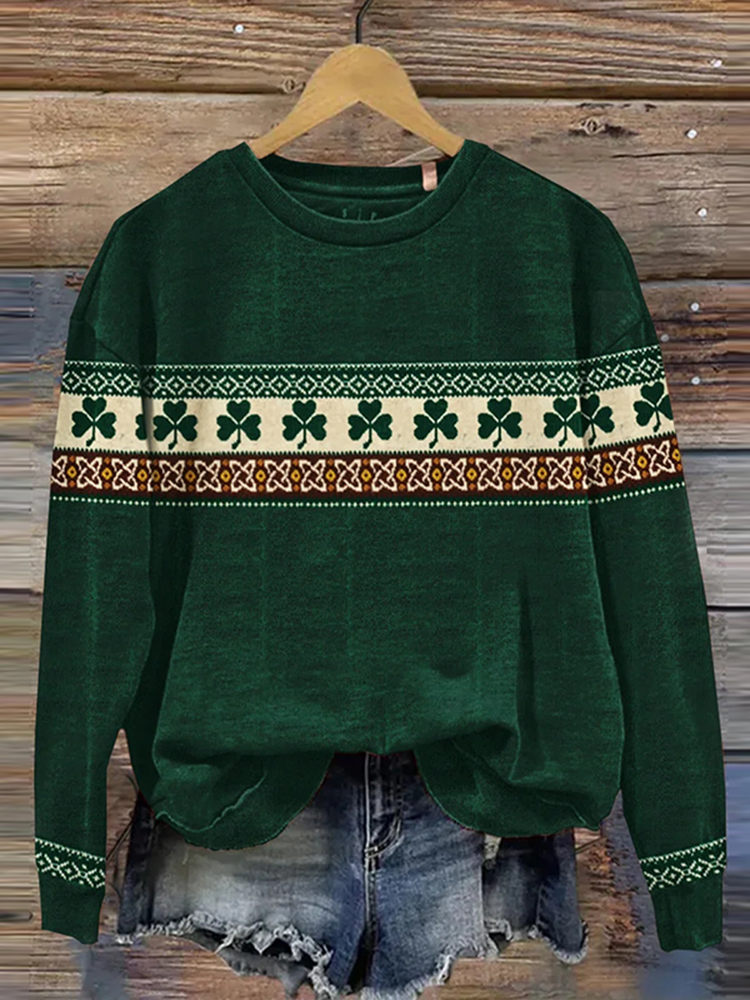 St. Patrick's Shamrock Print Casual Sweatshirt
