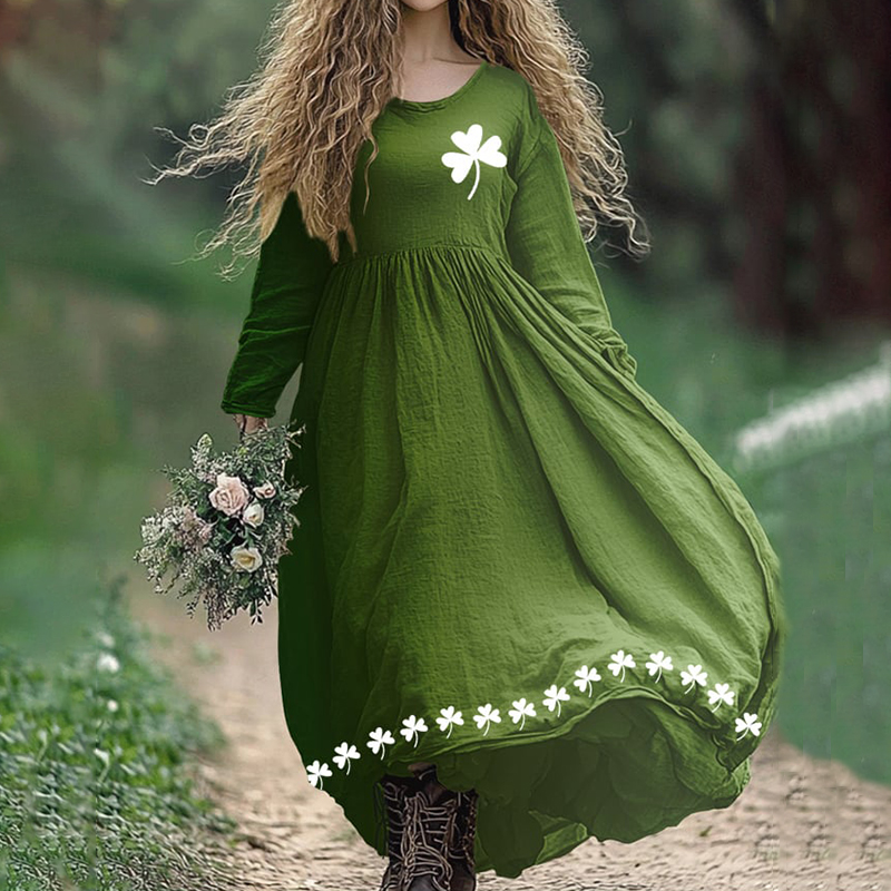 St. Patrick's Shamrock Print Crew Neck Linen Blend Maxi Dress