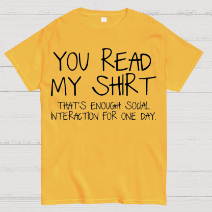 You Read My Shirt That's Enough Social Interaction For One Day T-shirt