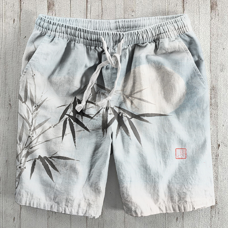 Bamboo & Moon Japanese Art Linen Blend Shorts