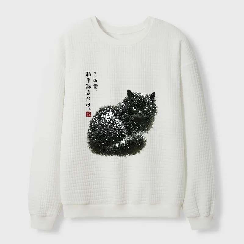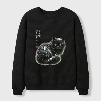 Black Cat Adorned By Snow Waffle Sweatshirt