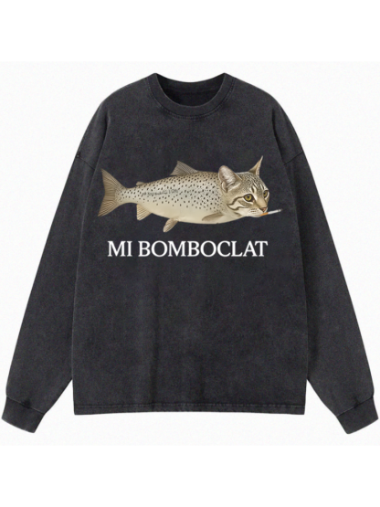 Bomboclat Fish Cat Meme Long Sleeve Washed T-shirt