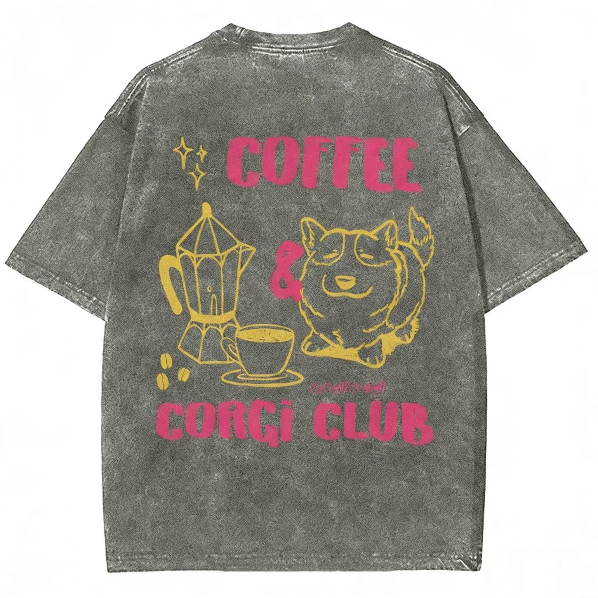 Coffee Corgi Club Unisex Fit Washed T-shirt