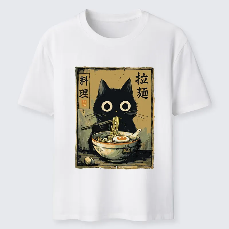 Cute Black Cat Eating Ramen Japan Classic T-shirt