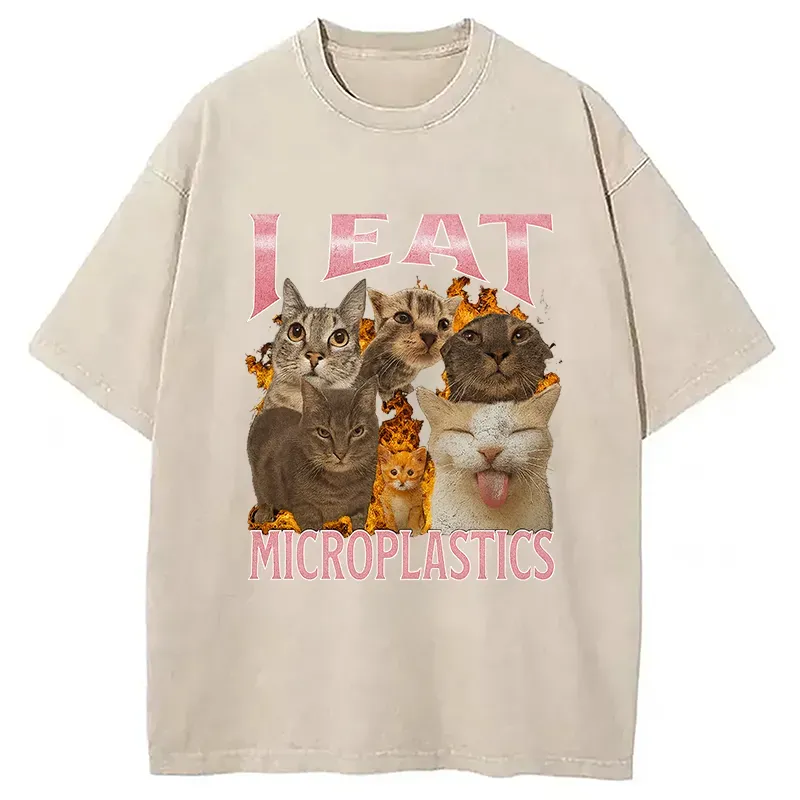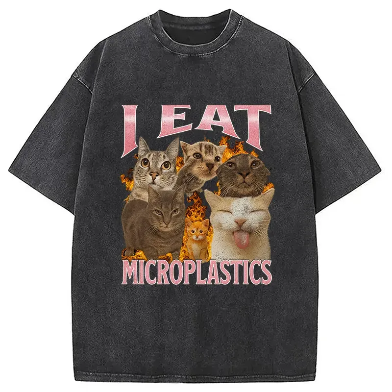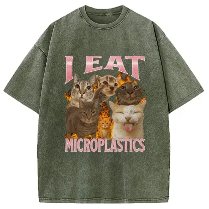 I Eat Microplastics Funny Cat Meme Washed T-shirt