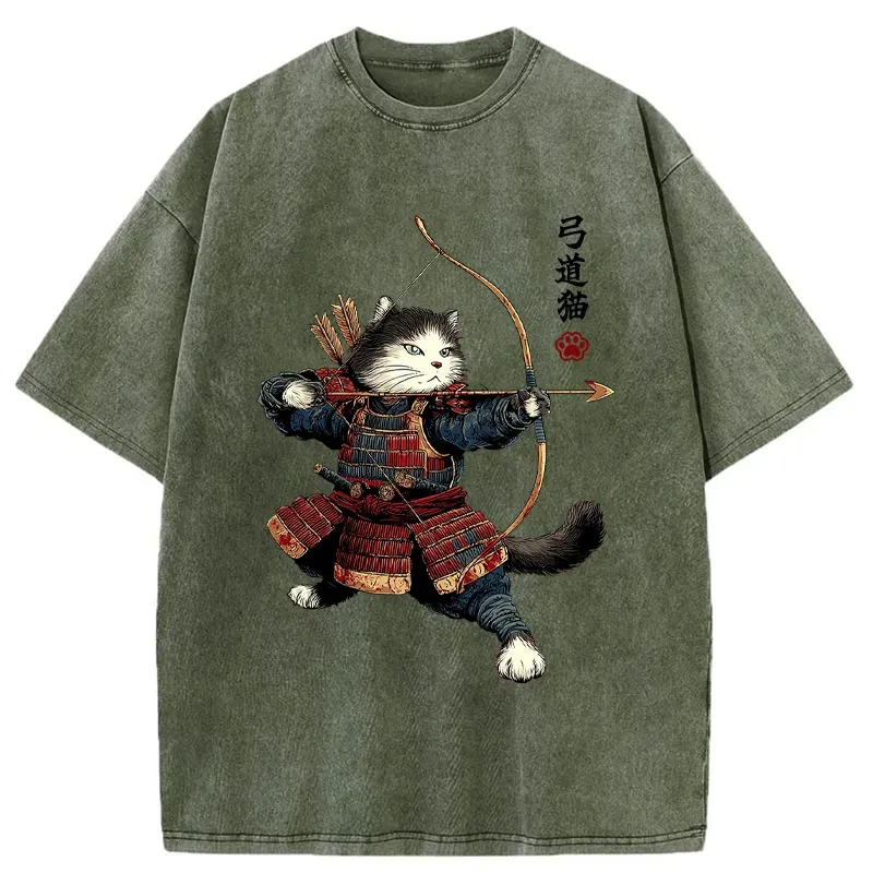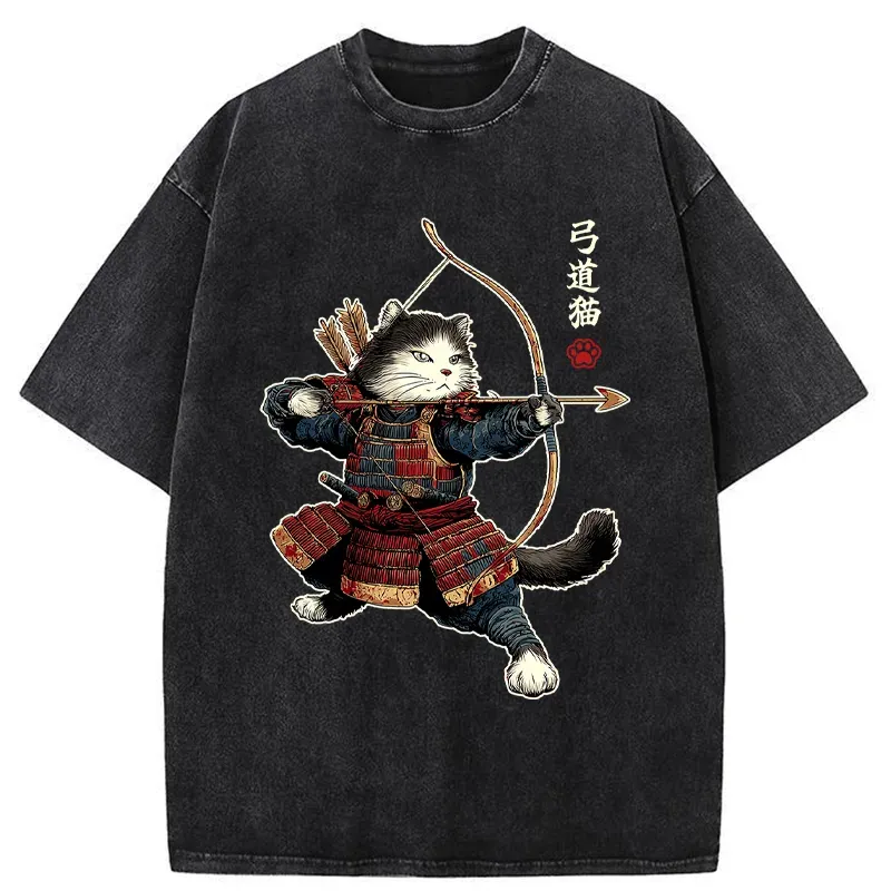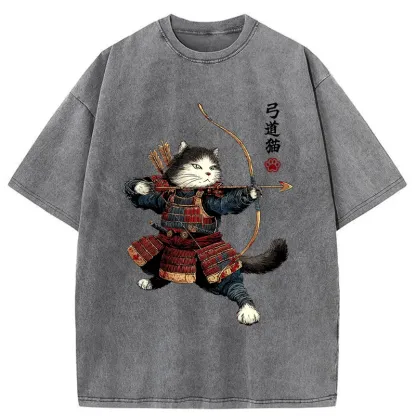 Kyudo Samurai Cat Washed T-shirt