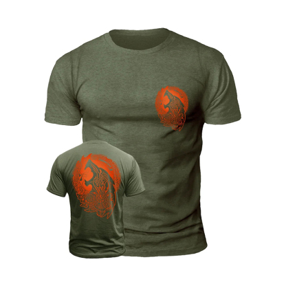 Men's Viking Flame Wolf Print Casual Short Sleeve T-shirt