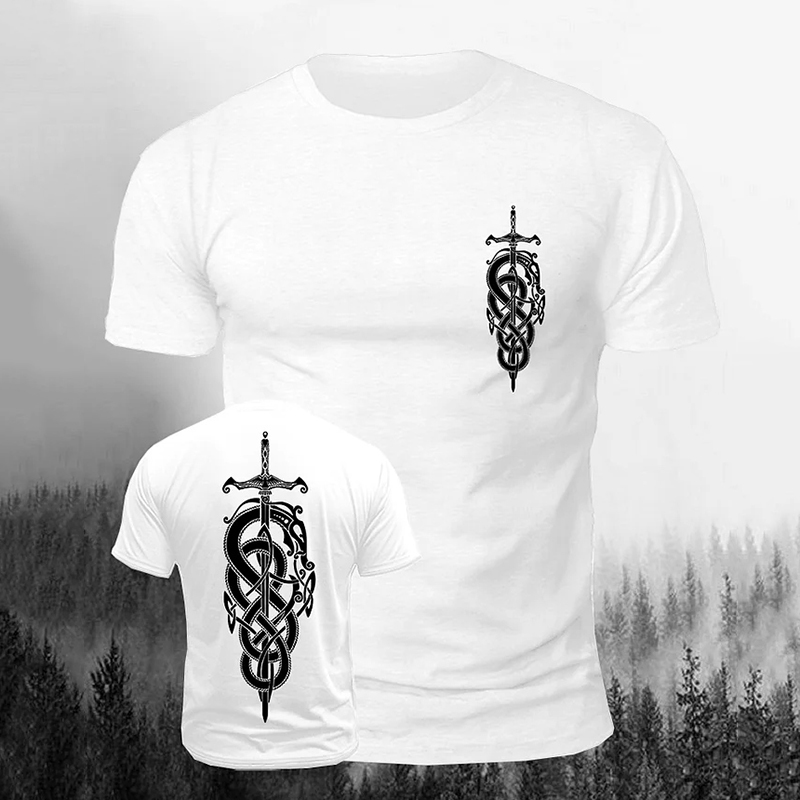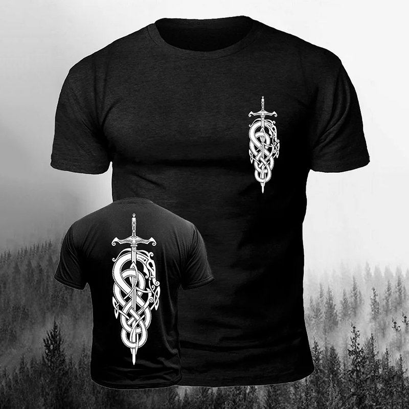 Men's Viking Snake Winding Sword Print Casual Short Sleeve T-shirt