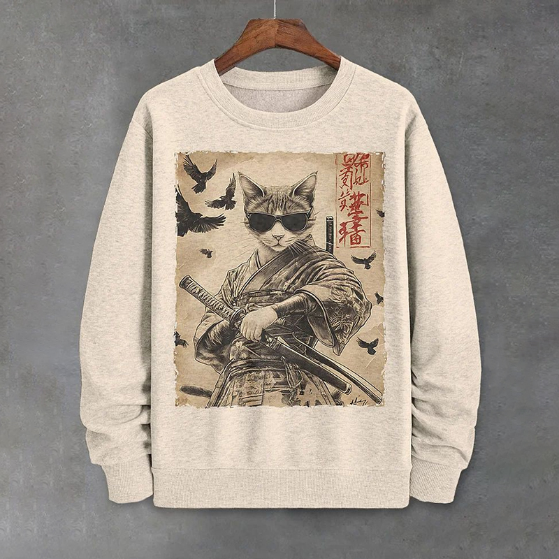 Men's Warrior Cat With Sunglasses Art Print Casual Sweatshirt