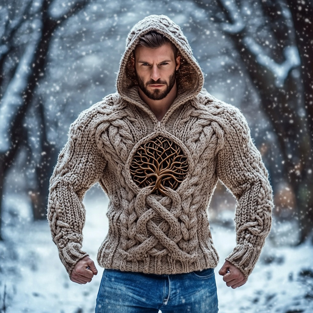 Mens Viking Life Of Tree Celtic Thick Hooded Sweater