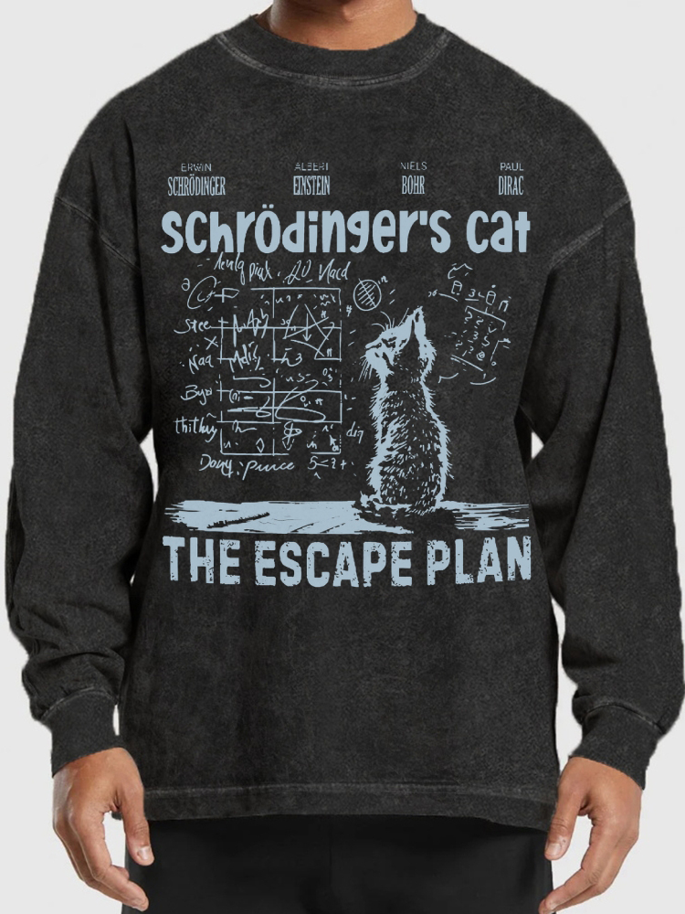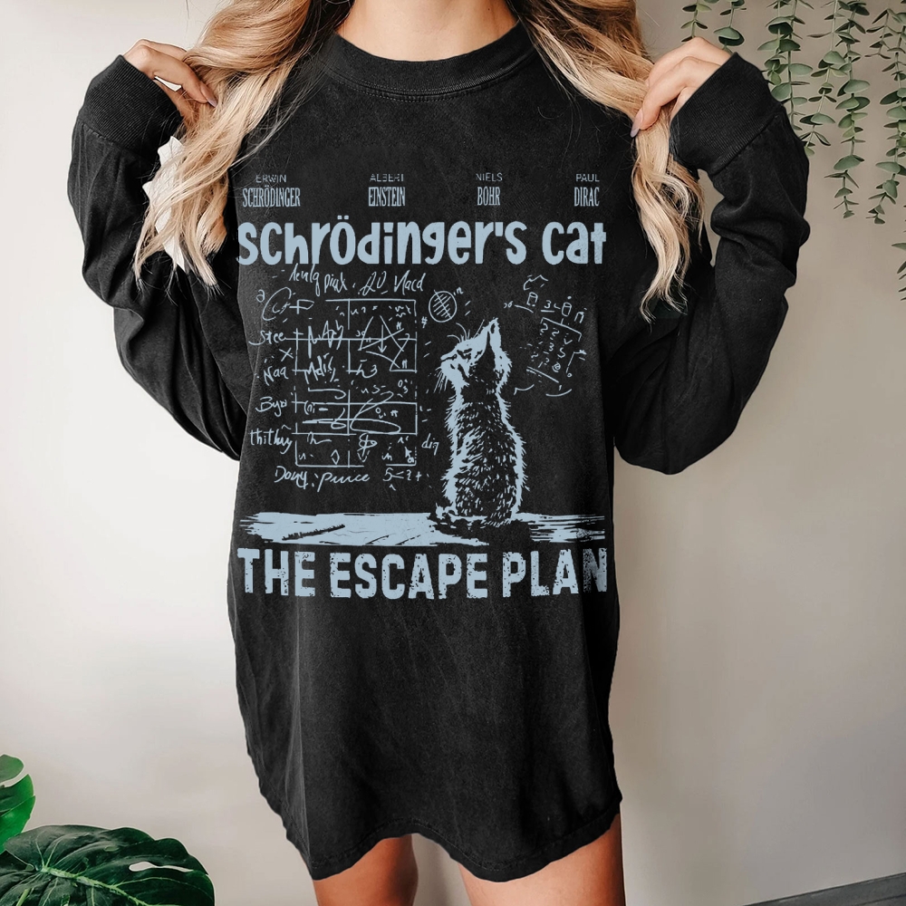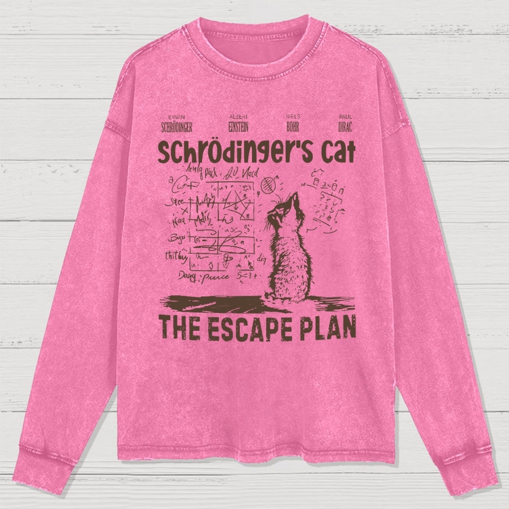 Schrodinger's Cat Escape Plan Interesting Physics Science Washed Long Sleeve Tee