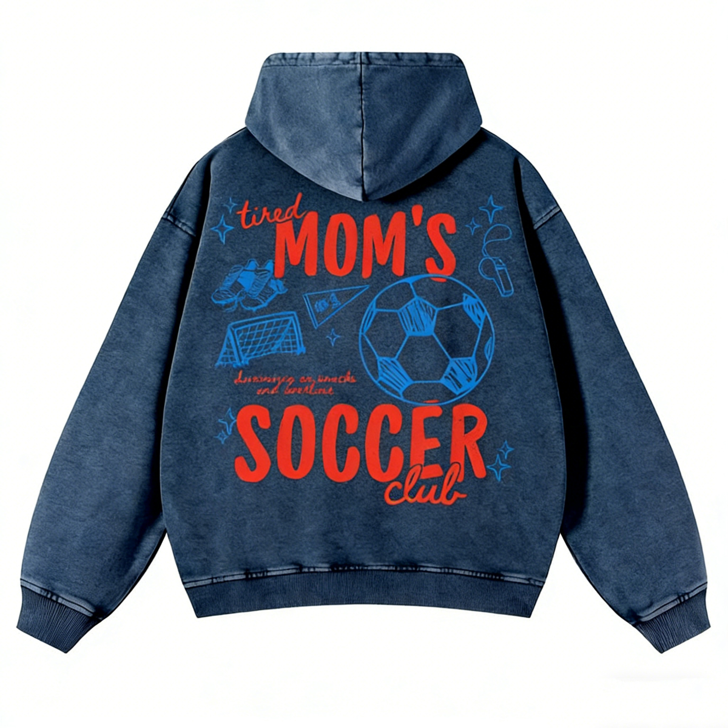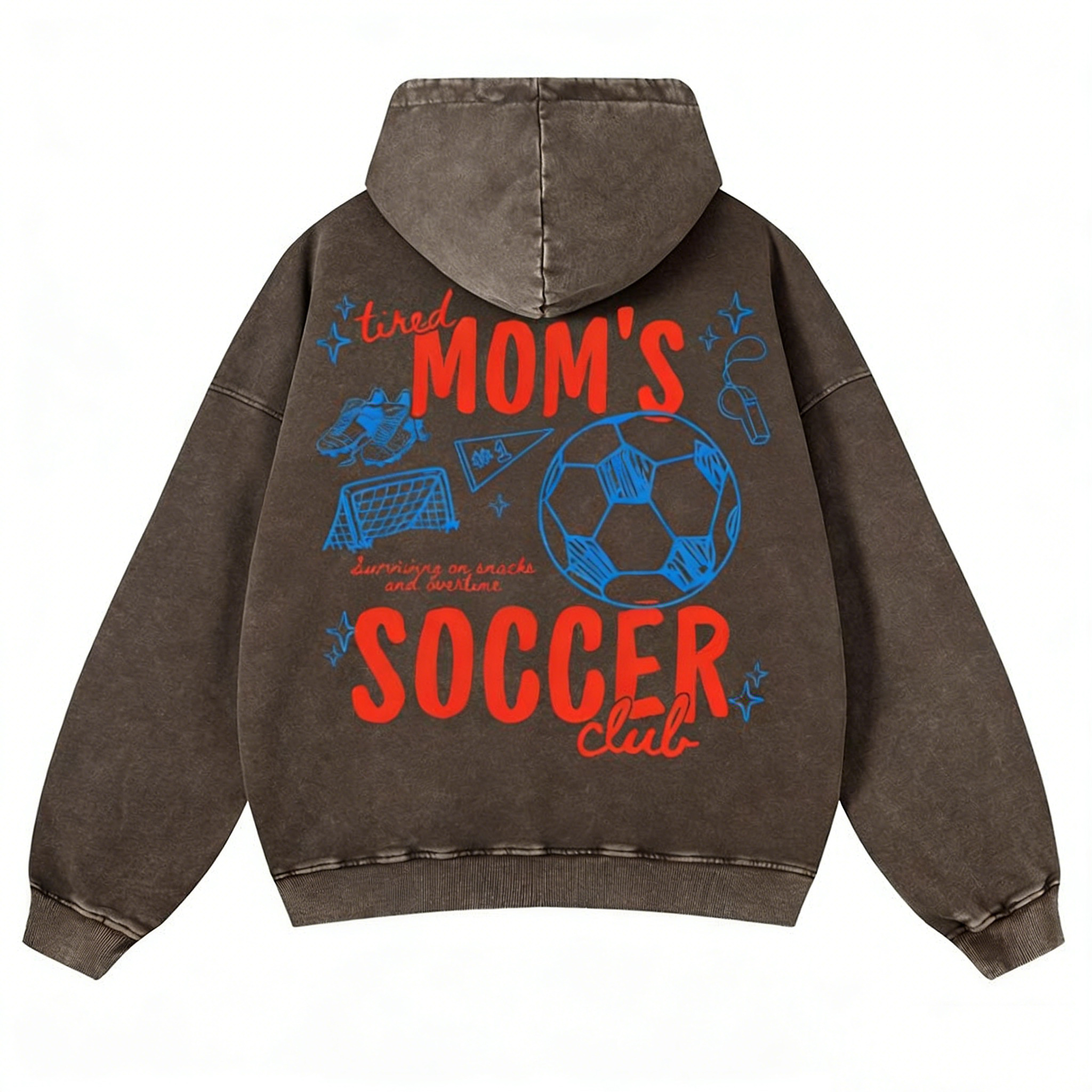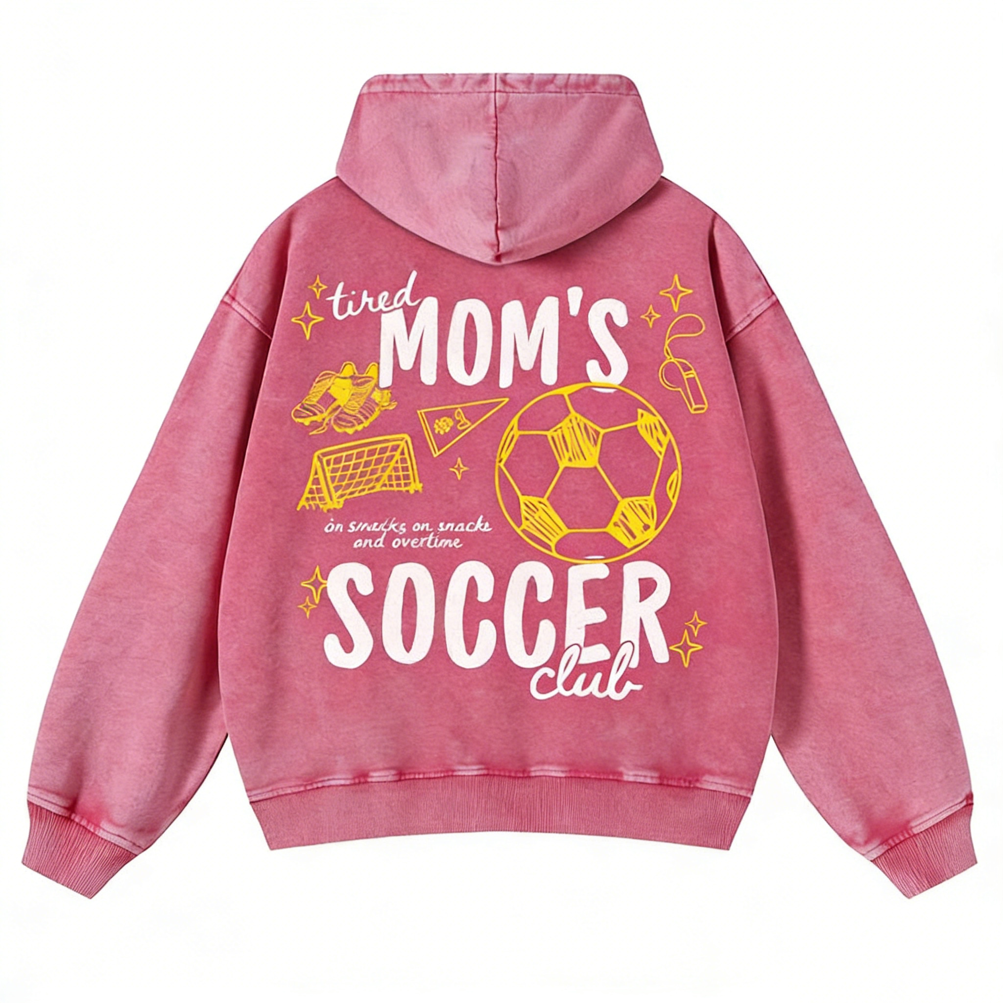 Tired Mom's Soccer Club Casual Washed Hoodie