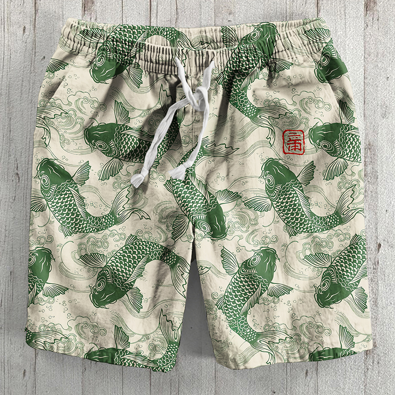 Vintage Fish Japanese Art Graphic Printed Casual Shorts