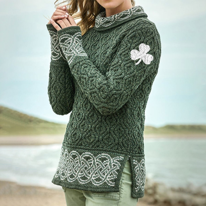 Women's Celtic Knotted Clover Creative Jacquard Turtleneck Sweater