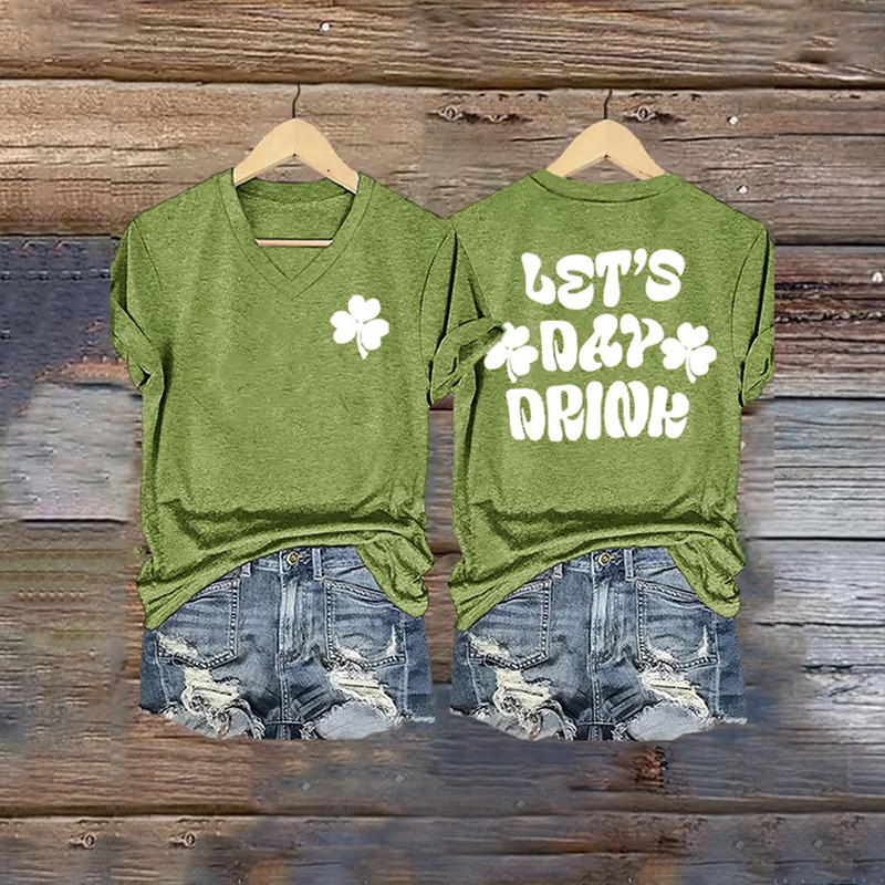 Women's St. Patrick's Day Let's Day Drink Print T-shirt
