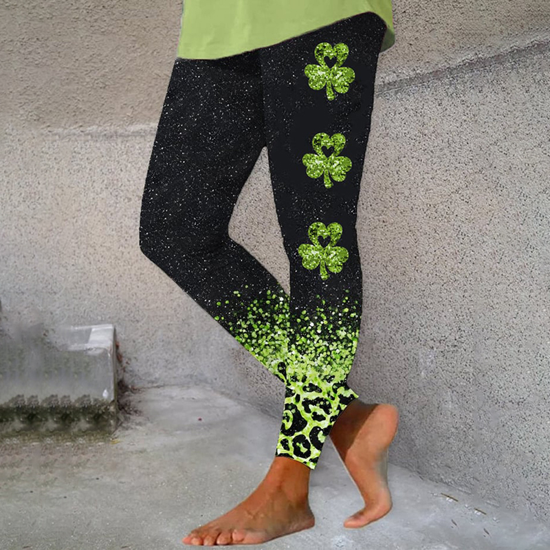 Women's St. Patrick's Day Sequin Shamrock Print Casual Leggings