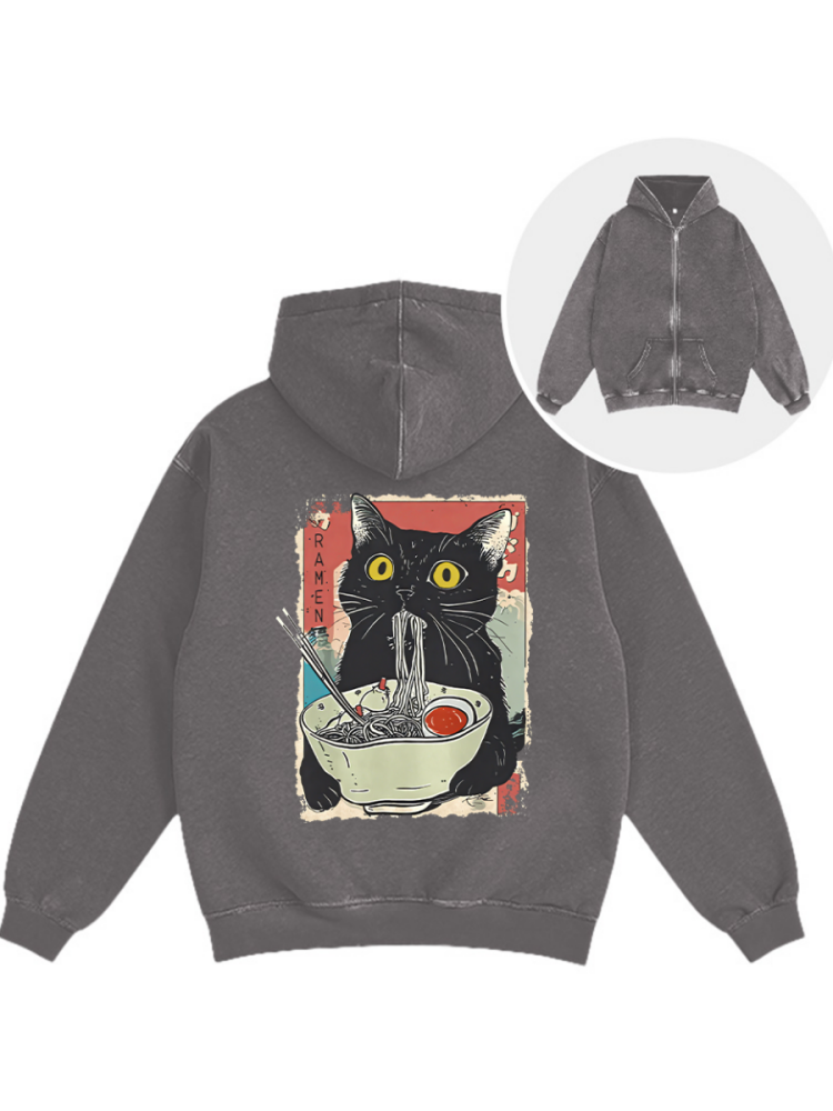 Men's Cat Coffee Cup Japanese Art Painting Print Cozy Sweatshirt