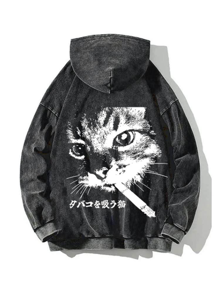 Men's Cat Coffee Cup Japanese Art Painting Print Cozy Sweatshirt