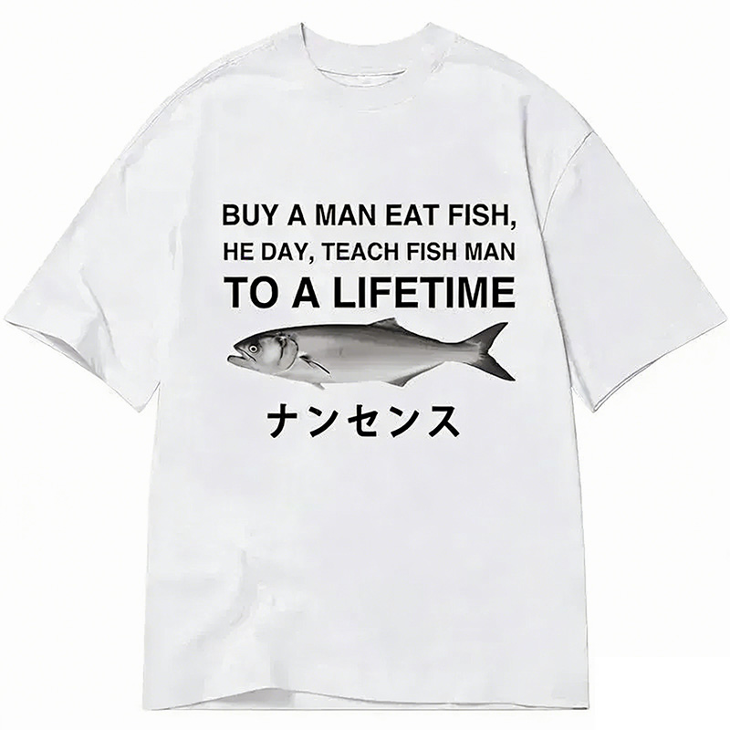 Colorful Fish Print Linen Blend Casual Shirt